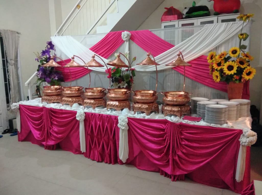Sejak 2010, kami telah berpengalaman melayani dan menyajikan prasmanan/buffet untuk perkantoran, pernikahan, arisan, aqiqah, selamatan, dan berbagai acara lainnya. Kami berkomitmen untuk memastikan kepuasan customer kami. Dengan armada transportasi yang siap setiap saat serta CHEF dan pelayan yang berpengalaman, kami siap melayani Anda dengan sepenuh hati.